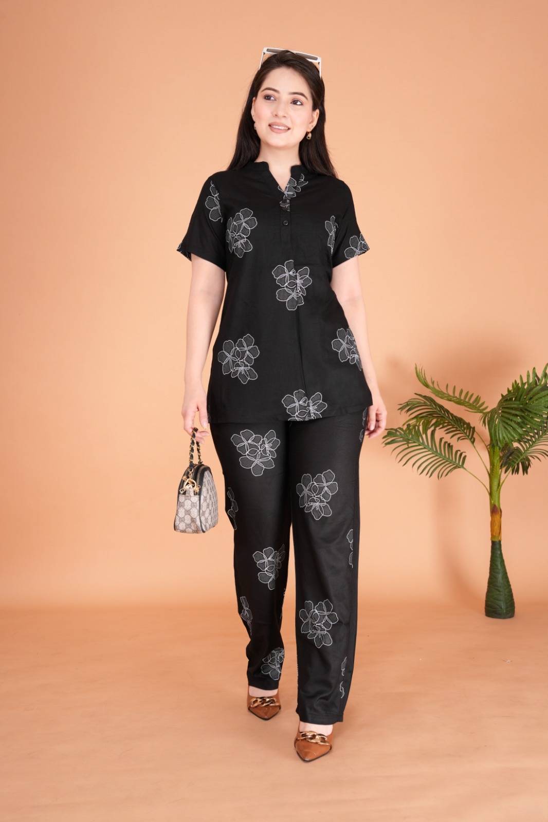 Step into effortless sophistication with this Front-open pyjama lounge set, tailored to perfection for the modern woman. Designed with a