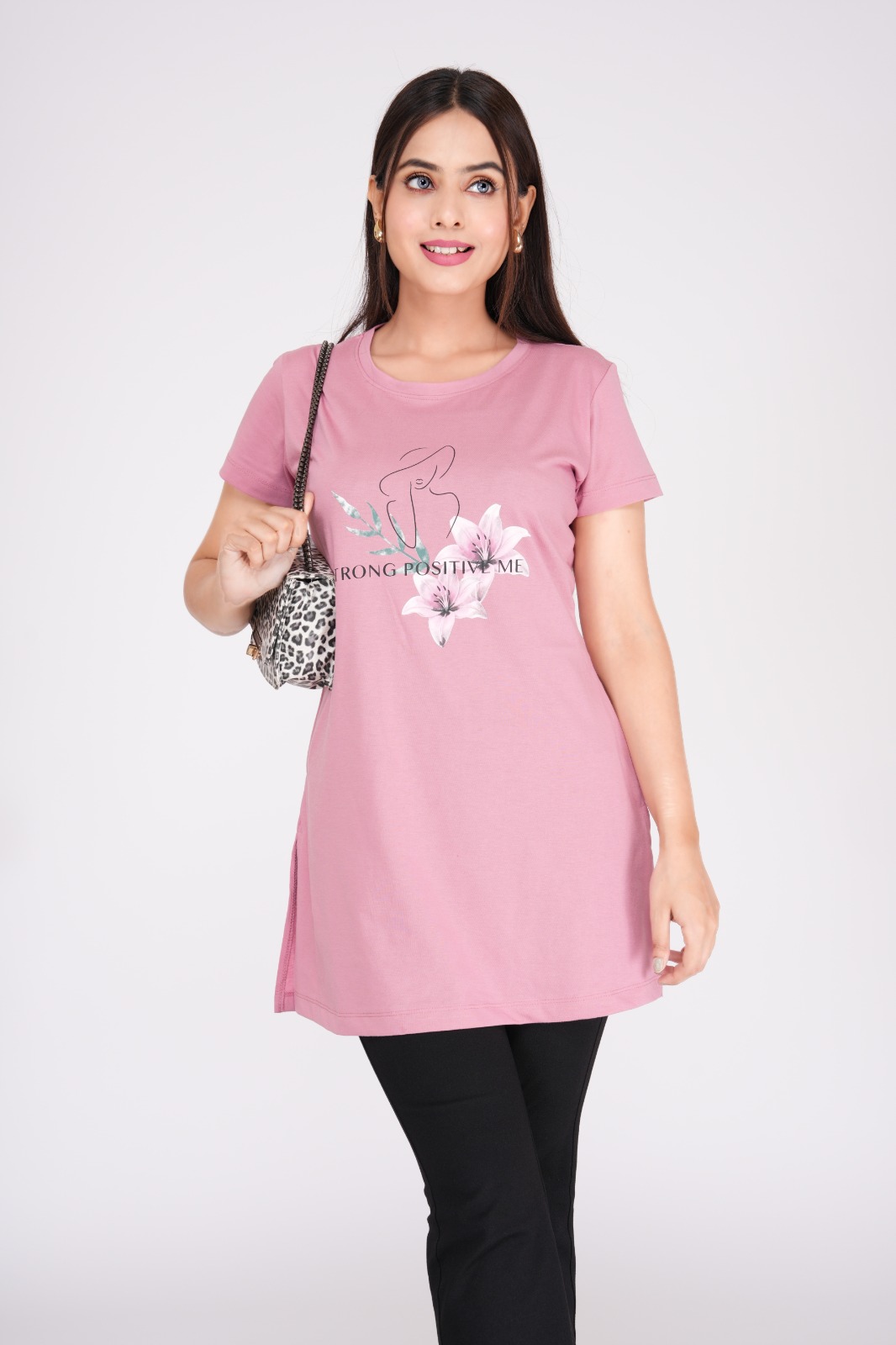 Crafted from premium cotton hosiery, this women’s long top blends comfort with quiet elegance. A refined front print adds just the right touch of detail, making it effortlessly wearable. Designed for those who value quality over trends—subtle, timeless, and made to last. Let your style speak softly.