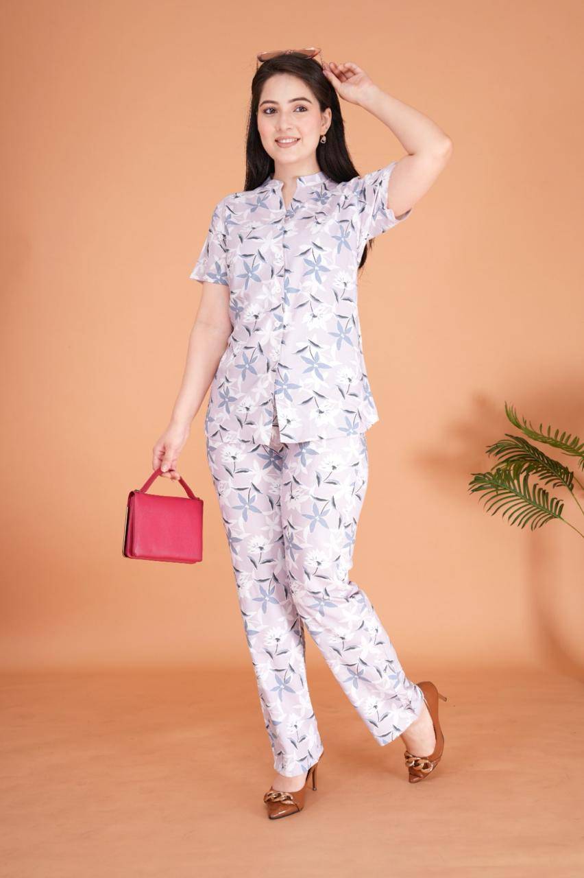 Breezy, beautiful, and effortlessly refined — this relaxed-fit co-ord set is crafted from premium textile rayon, offering an ultra-soft feel with graceful drape. The front-open silhouette with a kurta collar lends a touch of structure, while the soothing pastel floral print brings calm sophistication. Perfect for day strolls or slow evenings, it’s lounge luxury at its finest.