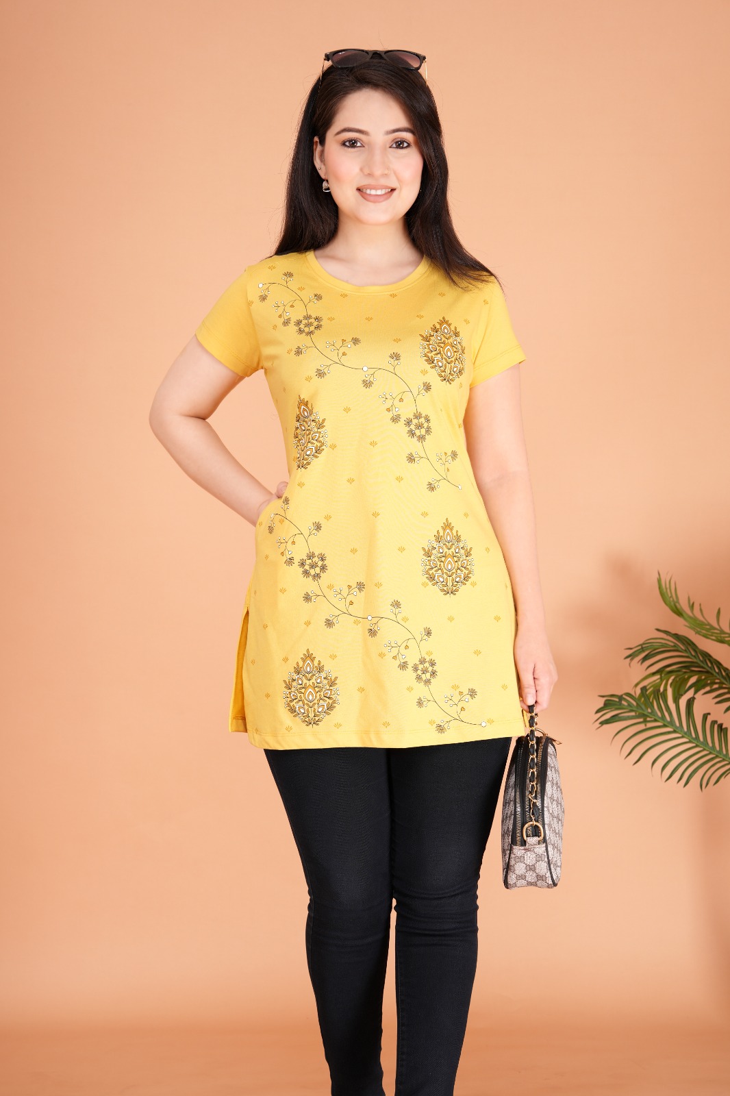 Crafted from premium cotton hosiery, this women’s long top blends comfort with quiet elegance. A refined front print adds just the right touch of detail, making it effortlessly wearable. Designed for those who value quality over trends—subtle, timeless, and made to last. Let your style speak softly.