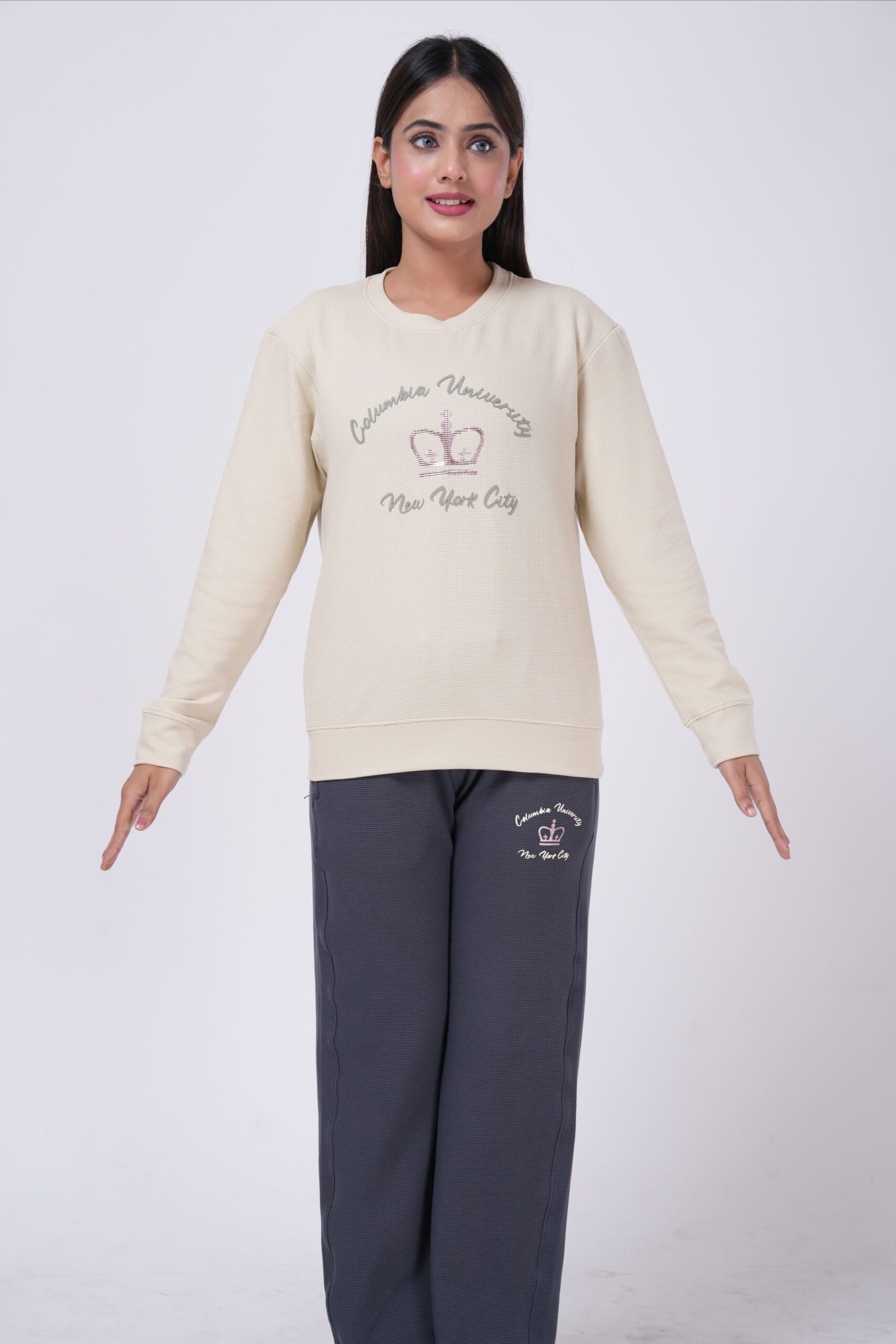 Stay effortlessly stylish and cozy with this premium loungewear set from Abidha. Designed for women who love comfort with a touch of elegance, this two-piece set features a “New York” embroidered sweatshirt paired with matching bottoms. The soft, breathable fabric ensures all-day comfort, making it perfect for lounging, workouts, or casual outings.