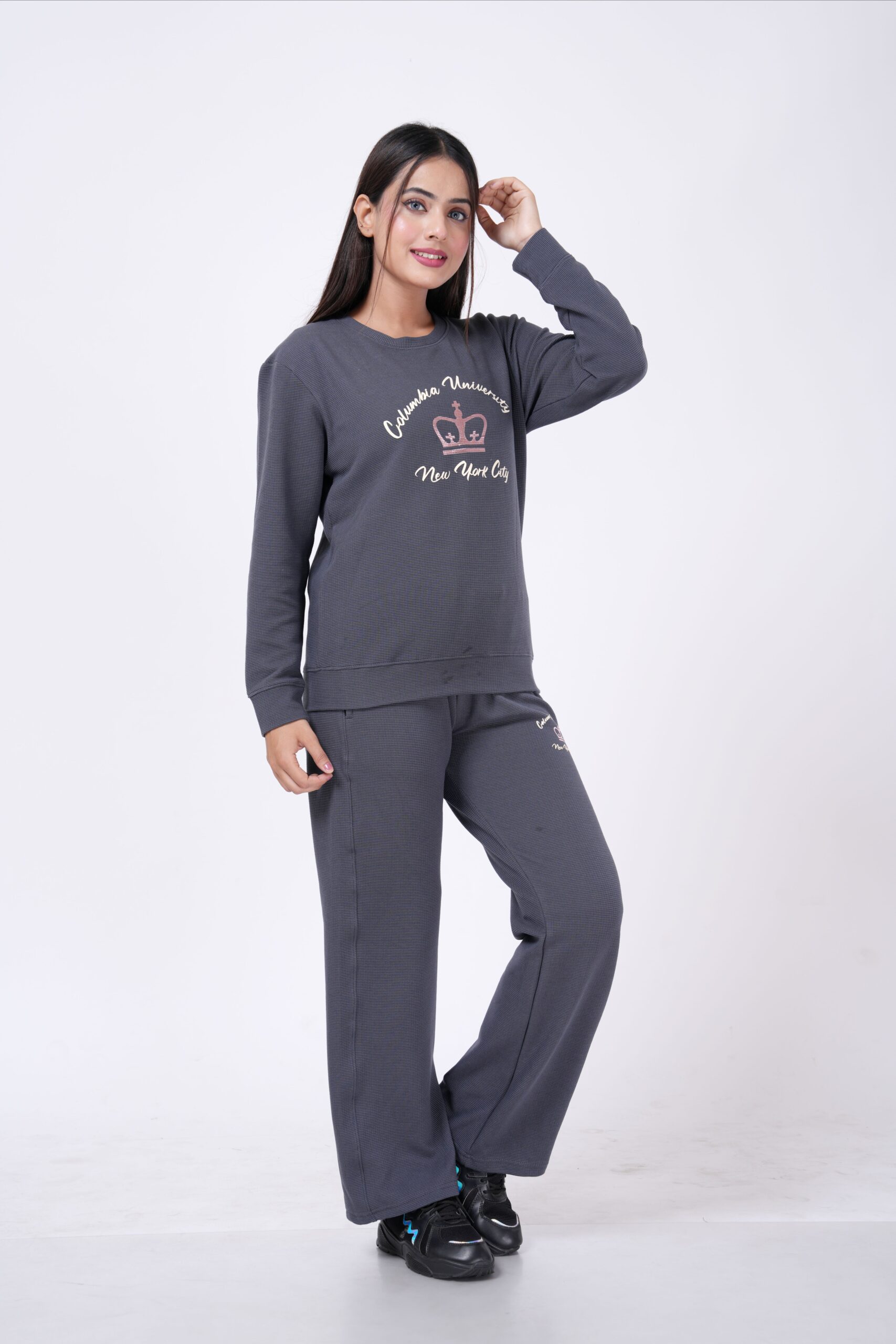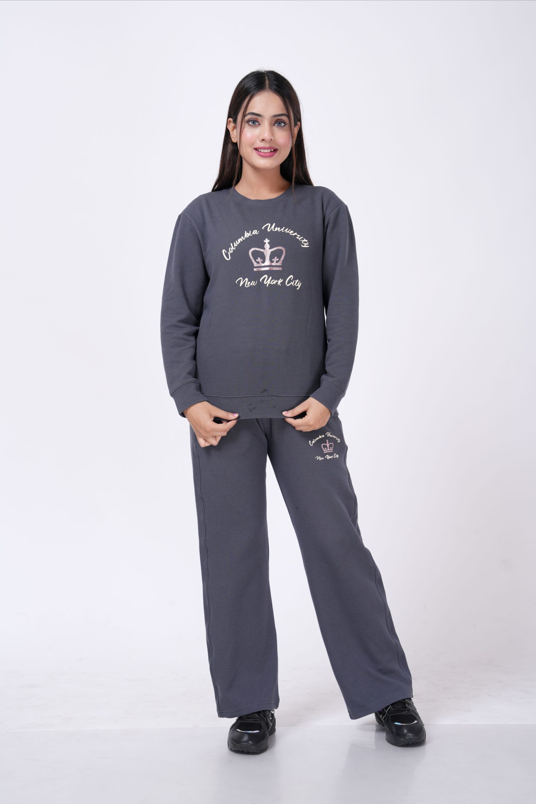 Stay effortlessly stylish and cozy with this premium loungewear set from Abidha. Designed for women who love comfort with a touch of elegance, this two-piece set features a “New York” embroidered sweatshirt paired with matching bottoms. The soft, breathable fabric ensures all-day comfort, making it perfect for lounging, workouts, or casual outings.
