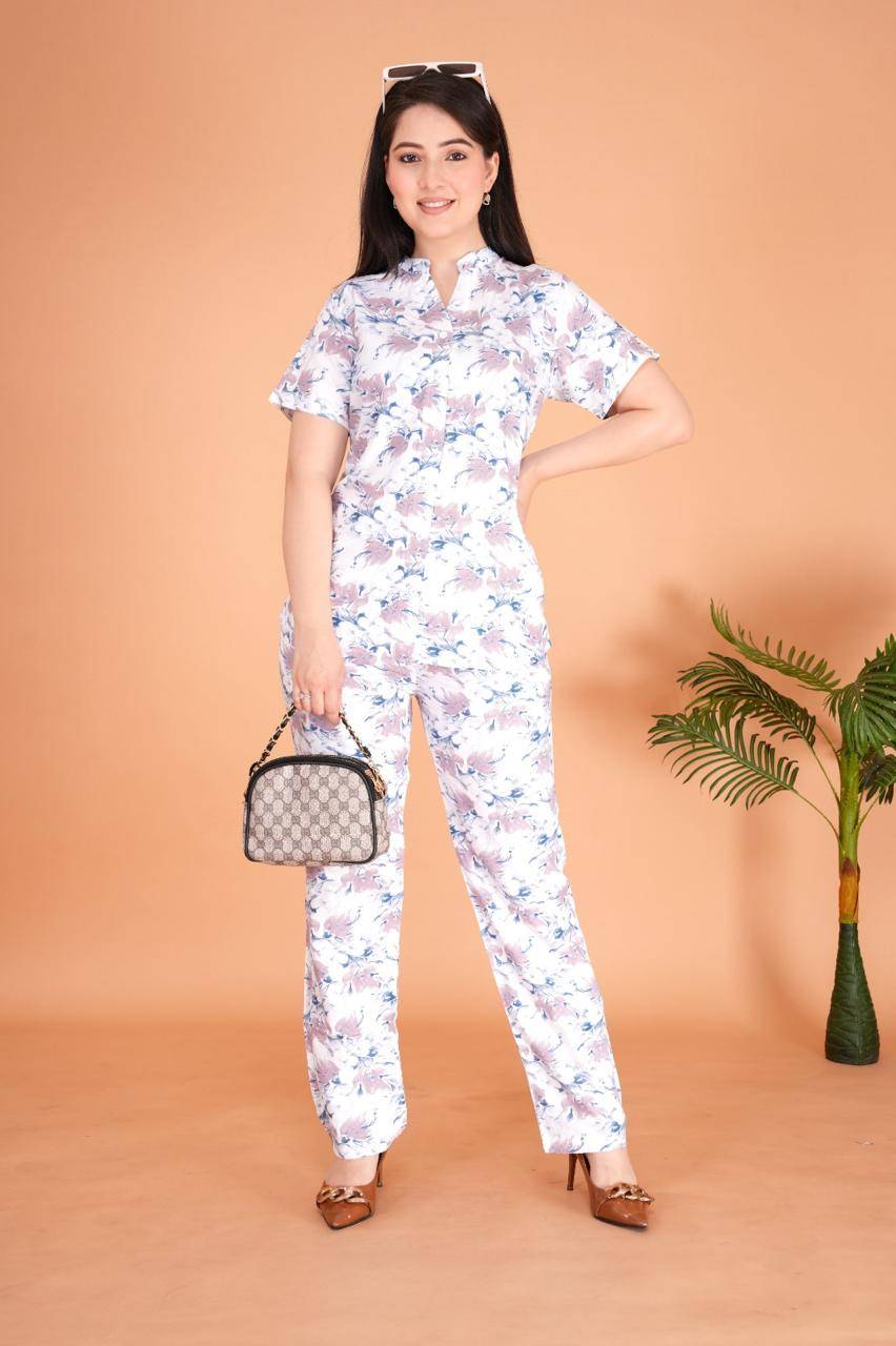 Breezy, beautiful, and effortlessly refined — this relaxed-fit co-ord set is crafted from premium textile rayon, offering an ultra-soft feel with graceful drape. The front-open silhouette with a kurta collar lends a touch of structure, while the soothing pastel floral print brings calm sophistication. Perfect for day strolls or slow evenings, it’s lounge luxury at its finest.