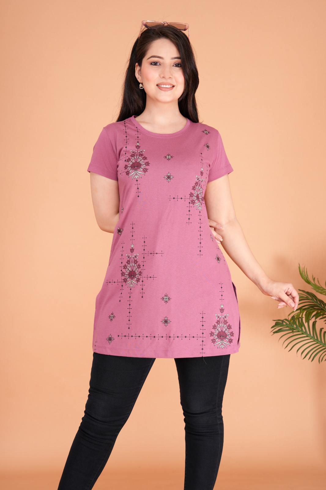 Crafted from premium cotton hosiery, this women’s long top blends comfort with quiet elegance. A refined front print adds just the right touch of detail, making it effortlessly wearable. Designed for those who value quality over trends—subtle, timeless, and made to last. Let your style speak softly.